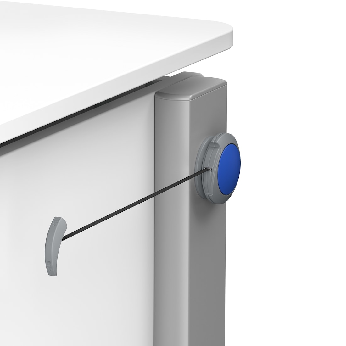 | ручная регулировка высоты c помощью крючкового механизма с предохранителем, пошаговая регулировка (шаг 3см), 10 уровней, дешевле. | бесступенчатая регулировка с помощью технологии тросовой тяги moll, которая просто «пристыковывается» к правой или левой стороне стола в виде колеса Jo-jo, дороже, справится сам ребенок, позволяет работать стоя до роста 155 см, более точная настройка по высоте, дороже. |