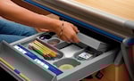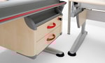 ![]() | Paper-Boy находится под нижним ящиком тумбы. Это практически незаметная, но очень удобная выдвижная панель для чертежного блока размером до формата А3 |