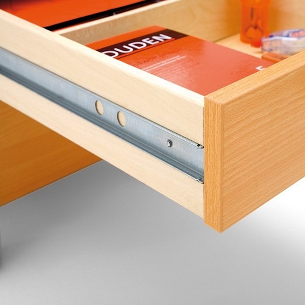 ![]() | Выдвижные ящики снабжены прецизионными направляющими с самовтягиванием и имеют дополнительные съемные перегородки |
