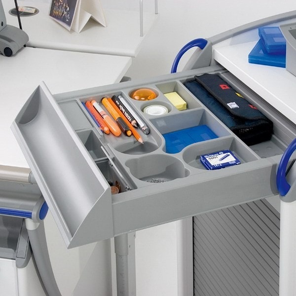 В тумбу Mega Basic, без сомнения, вместятся все письменные принадлежности Вашего ребенка. Тумба состоит из двух выдвижных ящиков (шуфляд), стационарного выдвижного пенала и вместительного отделения для габаритных вещей, которое закрывается шторкой и запирается на ключ.