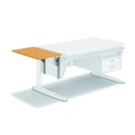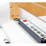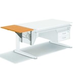 | Специальная панель для клавиатуры также имеет 3 уровня фиксации - ниже и выше столешницы, а так же в виде ее продолжения. Последний вариант увеличивает поверхность столешницы на 30% и особенно удобен при работе за ноутбуком; |
