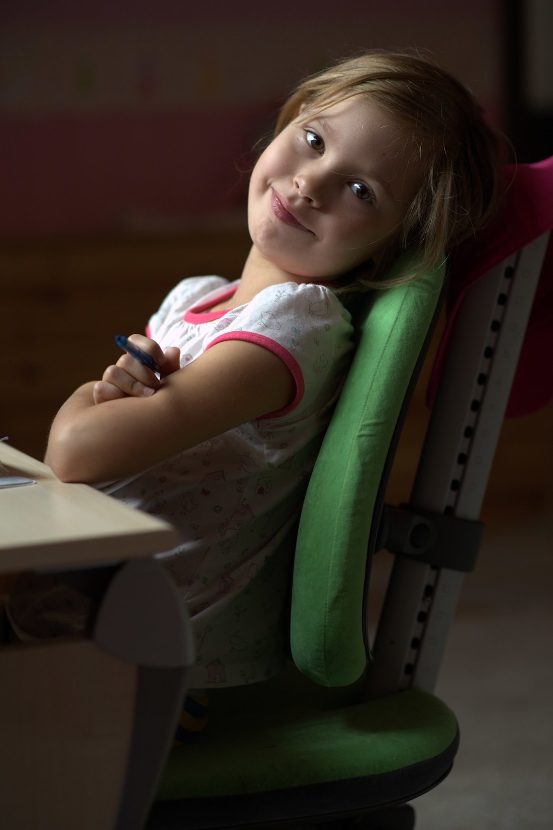 Мы с удовольствием публикуем фотографии Софьи из Минска. Интерьера на фотографиях не много, да он здесь и не нужен - посмотрите какие замечательные фотографии и какая на них умница Соня!"Нашей дочери Соне шесть лет. Стол и стул немецкой фирмы Moll мы приобрели два года назад и ни разу об этом не пожалели. Соня физически очень активный ребенок, при этом ей важно творчески самовыражаться. Именно поэтому уже на пятом году ее жизни нам пришлось срочно решать вопрос с местом для занятий за столом. Напольная жизнь в детской не могла уже удовлетворить Сонины запросы в самостоятельном чтении, письме и рисовании, занятиях по склеиванию и вырезанию. Ознакомившись с опытом семей друзей и приятелей, а также предложений отечественного рынка мы пришли к выводу, что более надежного способа решить этот вопрос, на наш взгляд, не предоставляется возможным. Стол и стул, растущие вместе с ребенком, целиком отвечающие нашим представлениям о качественном дизайне, максимальной функциональности и надежном исполнении, а, что самое главное, полностью обеспечивающие правильное формирование осанки ребенка на всем протяжении его роста – вот самый первый набор аргументов в пользу мебели Moll.