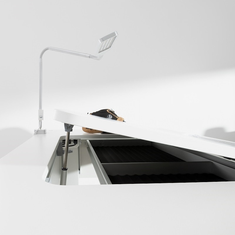 ![]() | Регулируемый наклон столешницы 0°-20°. Наклонная столешница с запатентованным механизмом защиты от защемления, сертификатом безопасности TÜV и системой self-protection. |