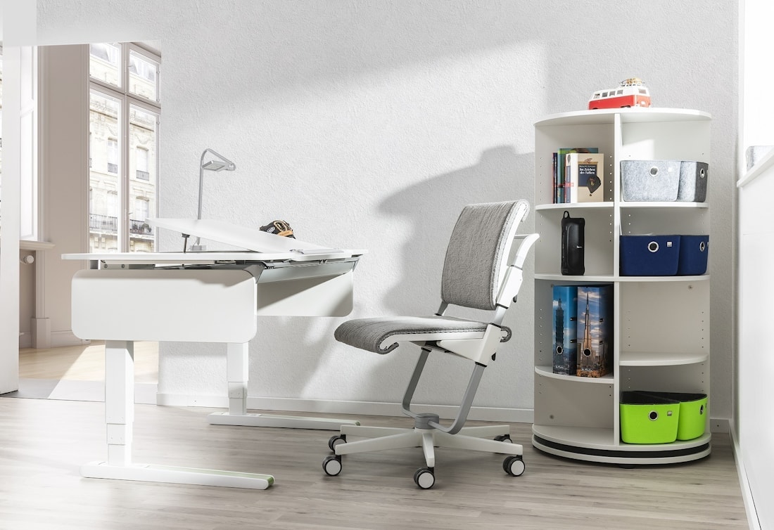 Все технологии и механизмы, которыми оборудован письменный стол e-Champion из Германии, абсолютно безопасны, экологичны и эргономичны для ребенка. К нему легко подобрать светильники и регулируемые стулья moll.