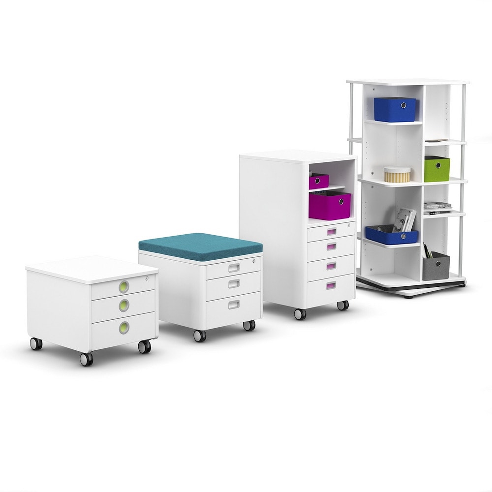 ![]() | Если вы ограничены по глубине для парты, книжки или другие канцелярские принадлежности хранить негде, то предлагаем рассмотреть один из вариантов подкатных тумб moll или крутящихся стеллажей Tower 56 |