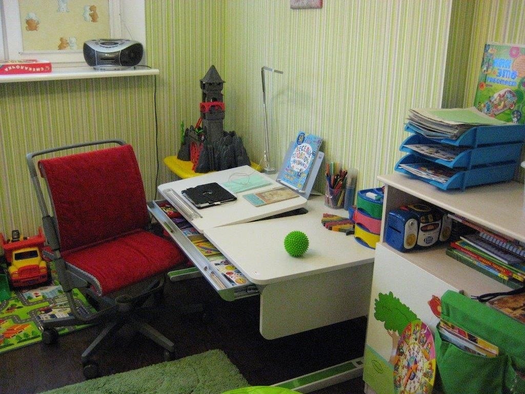 В детской комнате не было рабочего места. Рисование, лепка, складывание конструктора и выполнение домашних заданий происходило за кухонных столом. Но это крайне не удобно.Поэтому и было принято решение о приобретении стола.