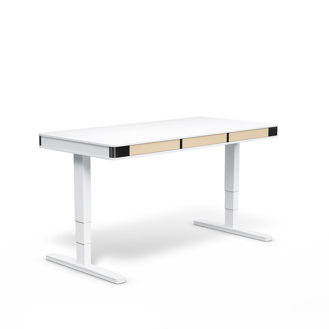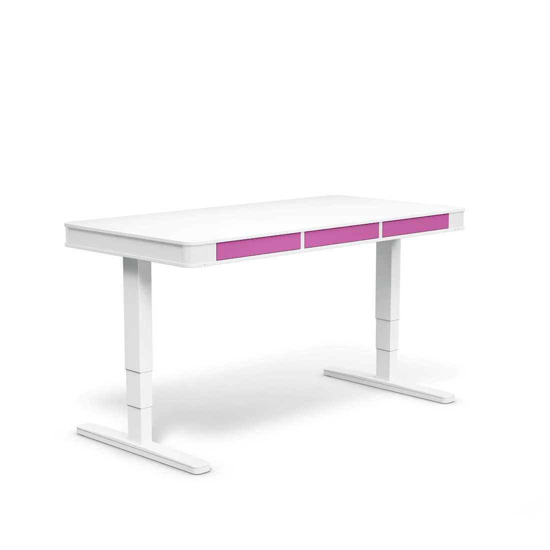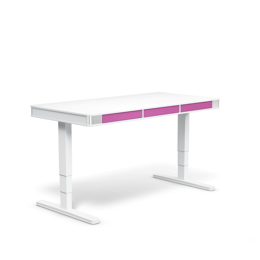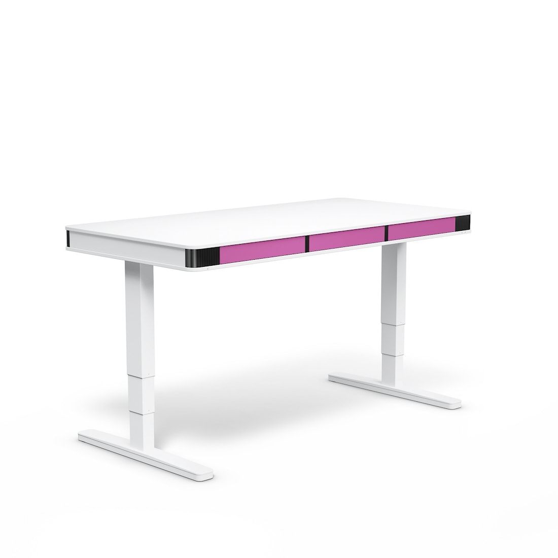 Дизайнерский регулируемый стол moll T6 L доступен в 2-х цветах корпуса, 5-ти цветах декора ящиков и 3-х отделок алюминиевого профиля: