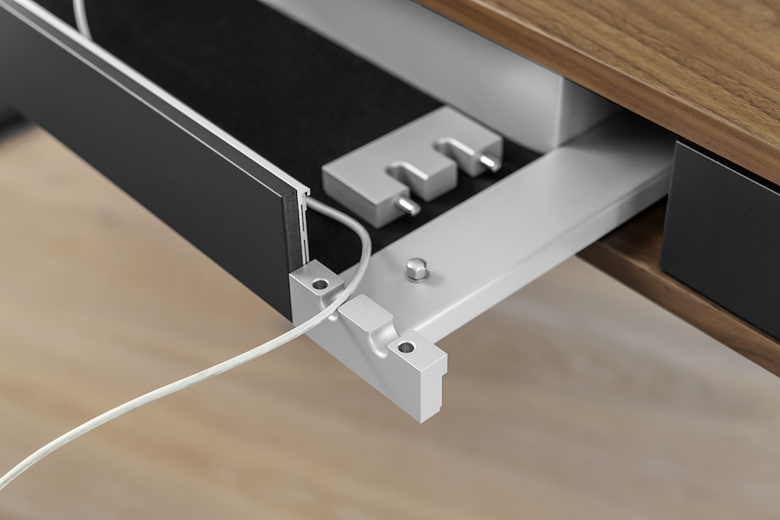 ![]() | Опционально кабель-канал под столешницу, чтобы при необходимости вывести кабель по правой телескоп-опоре |