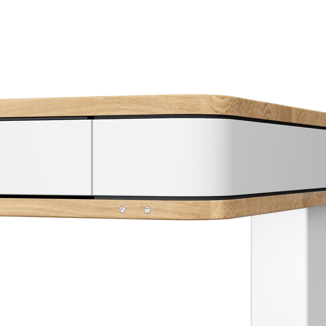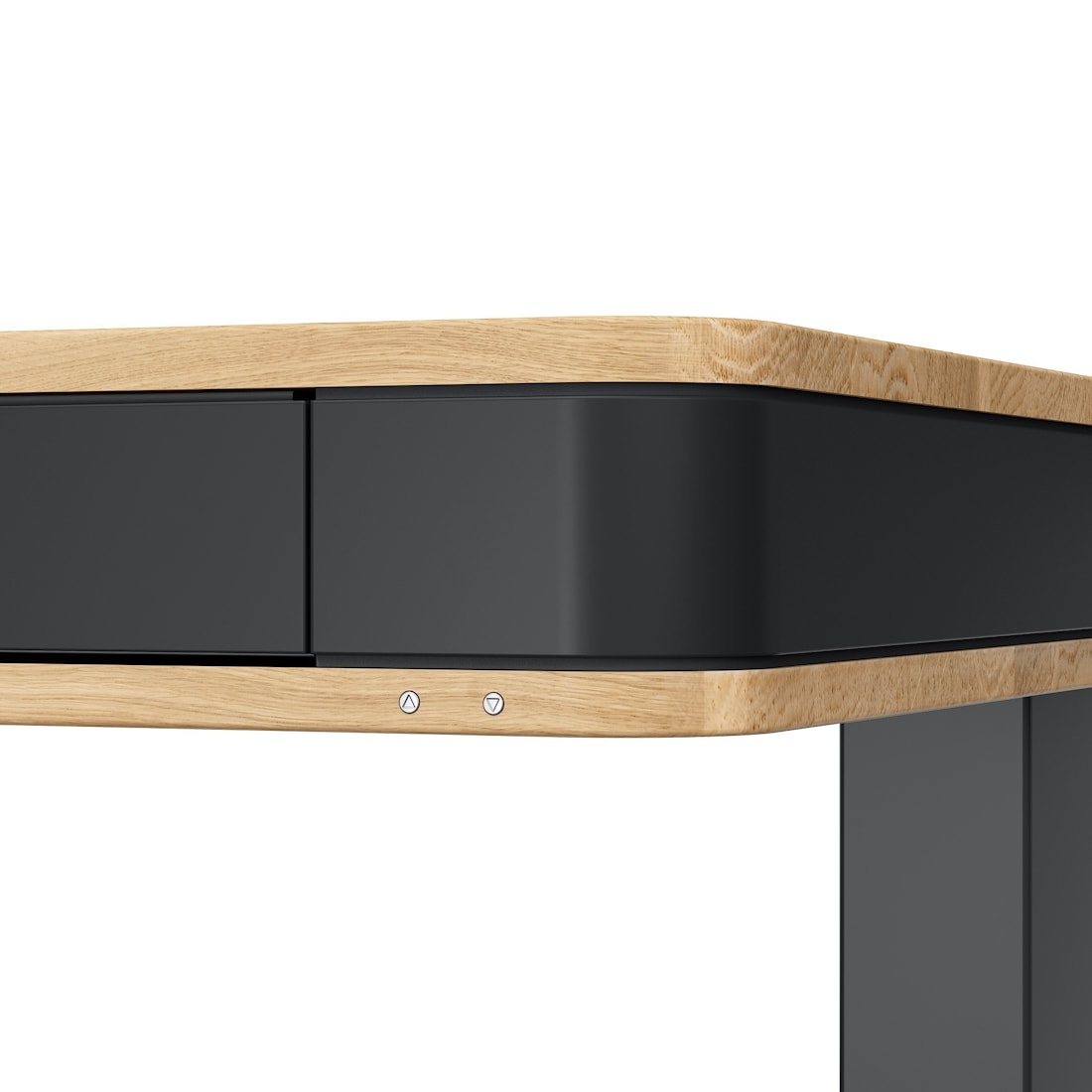 ![]() | Неброские кнопки управления высотой встроены в нижний край столешницы. |