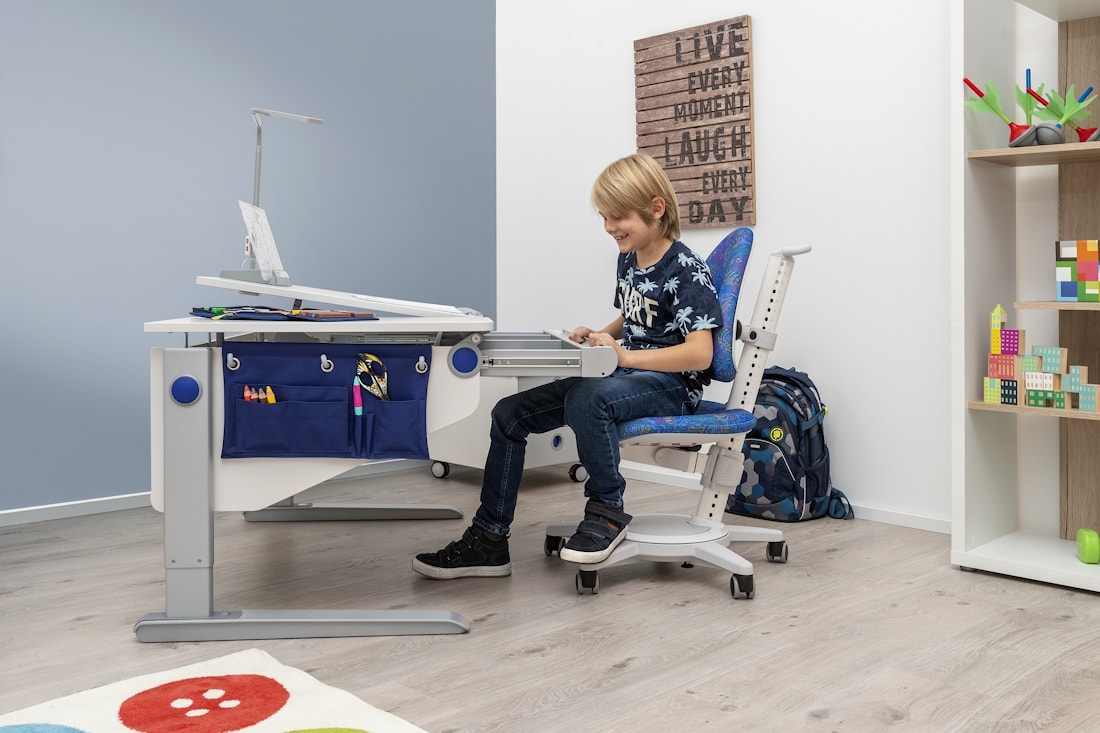 - Если сесть на стул, он легко подъедет к парте. У вас будет идеальная посадка, исключающая волочение стула к столу.